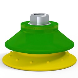 Ventosa  1.5 Fuelles Serie 97C Ø 100MM Color: Verde / Amarillo, Dureza Shore: SH60 / SH30, Materiales: Poliuretano